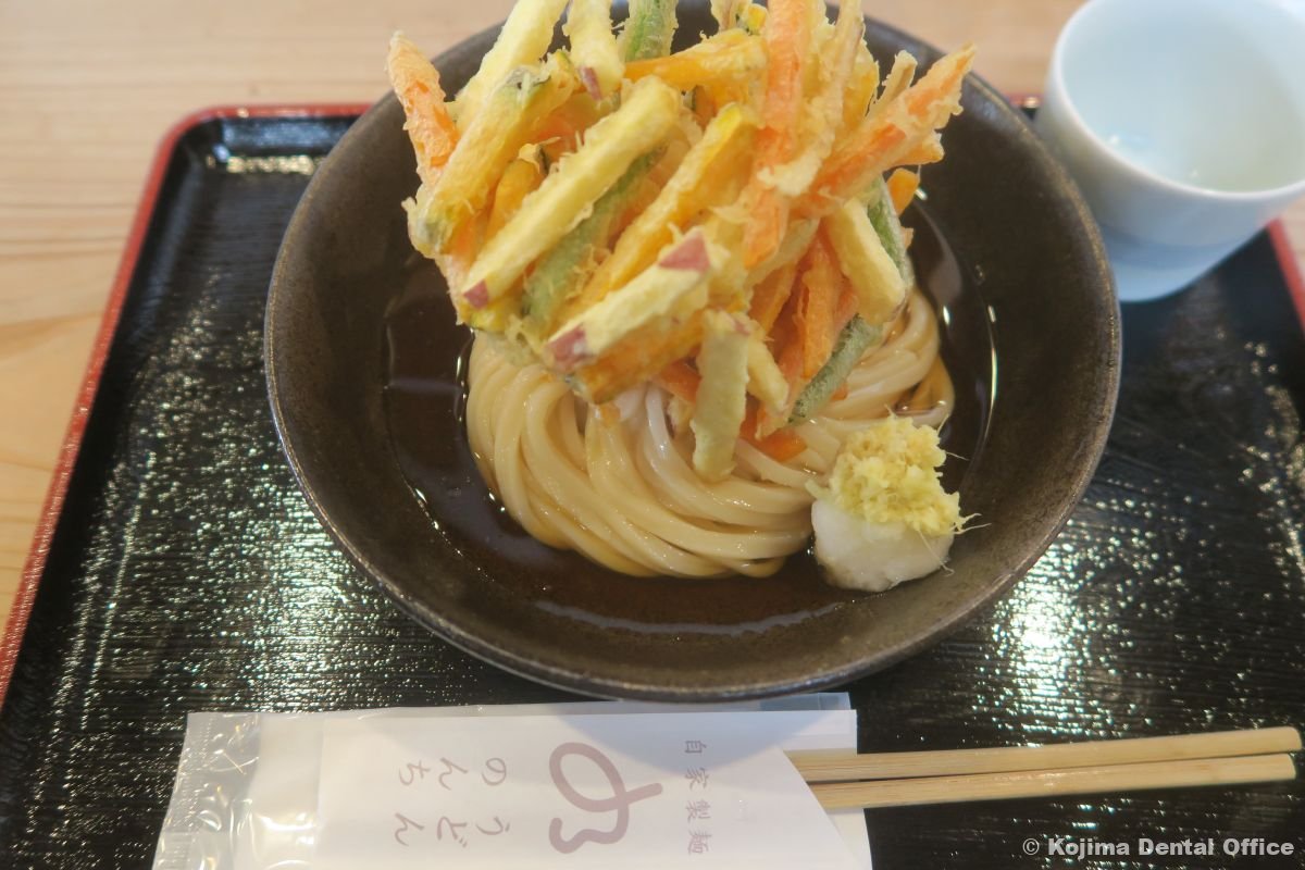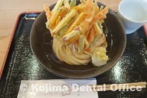 両園の移動途中に広がる潰れた家、一面の更地を見ると心が痛む。仮設住宅の一角に仮設の歯科診療所。隣の仮設店舗で「たいこ饅頭」。「のんち」、10年ぶり。満員、名前を書いて外で待つ。暑い。冷たいかき揚げうどんがうまい。歯ごたえ、のどごしがたまらない。