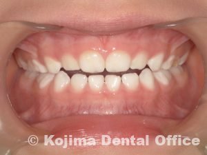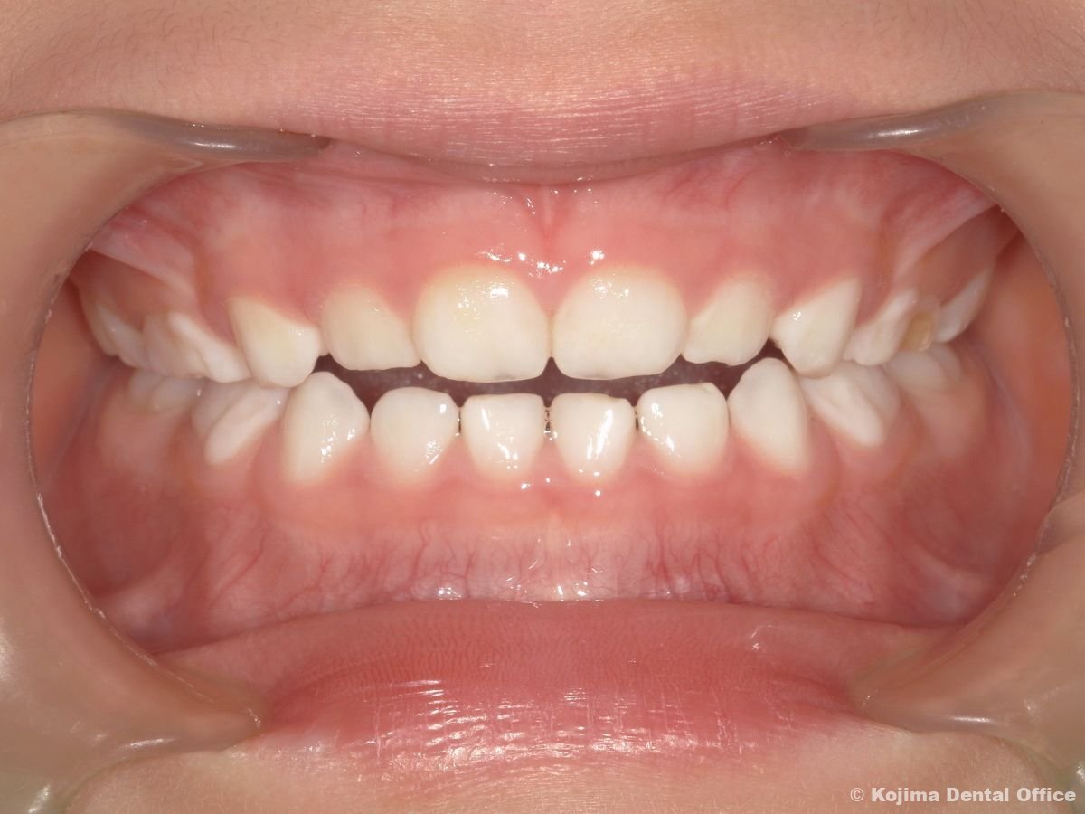 前歯が突出してくると、口唇を閉じ難くなり、いつも口を開けている癖がつき、鼻や咽の病気がないのに口呼吸しやすくなる。