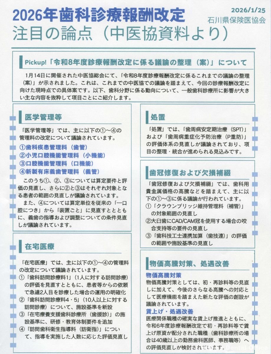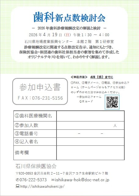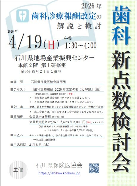 お知らせ「2026年歯科新点数検討会」4/19