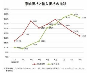 原油価格の高騰はピークを越えたものの、円安のせいで日本に到着した時の輸入価格は高止まりしたままだ。
