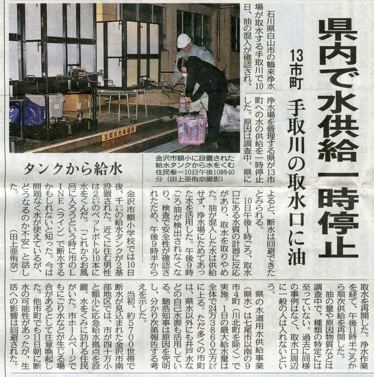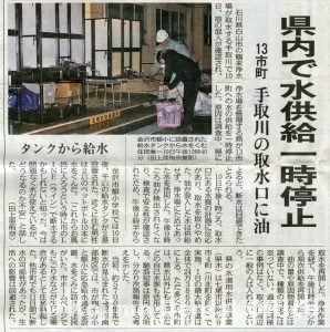【12】手取川に油混入 金沢市など石川県13市町で「給水制限の可能性」節水呼びかけ