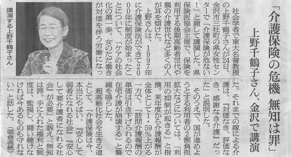 上野千鶴子氏講演会「介護保険が危ない!」
