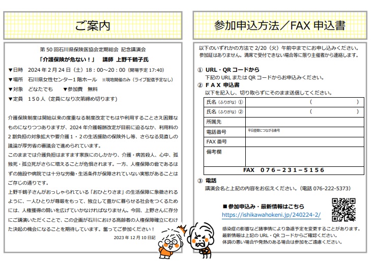 第 50 回石川県保険医協会定期総会 記念講演会