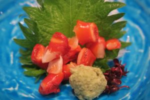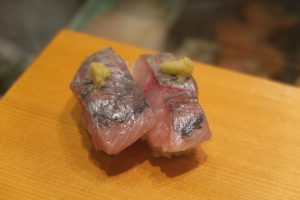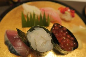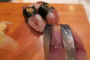 赤いか、赤西貝、鯖、ガス海老、マグロ、ノドグロの昆布締め、