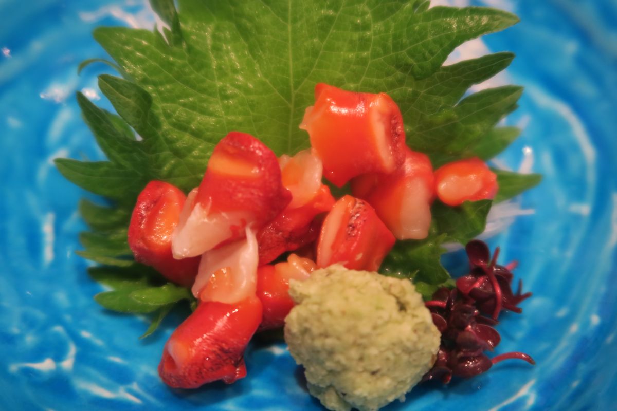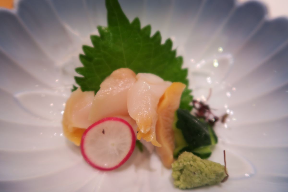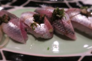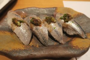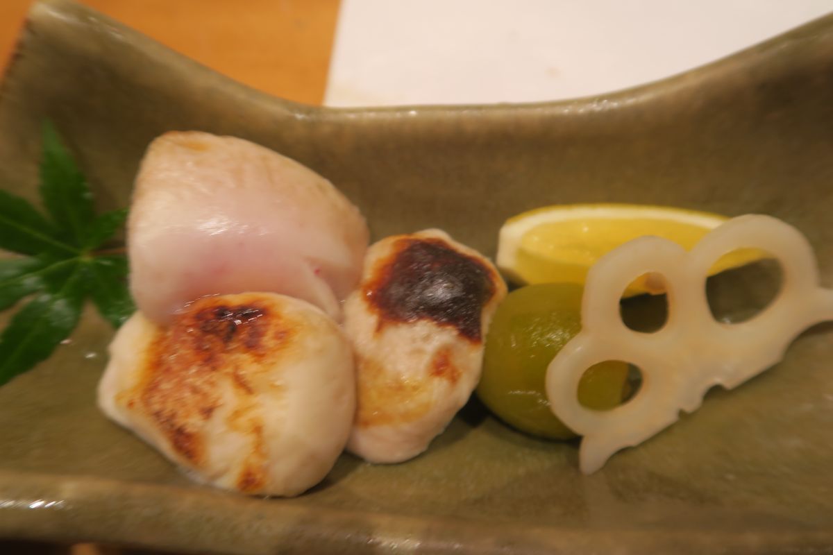 赤西貝、生牡蠣、ガス海老、生だこ、フグの白子焼き、ホタルイカ、鰯のにぎり。
