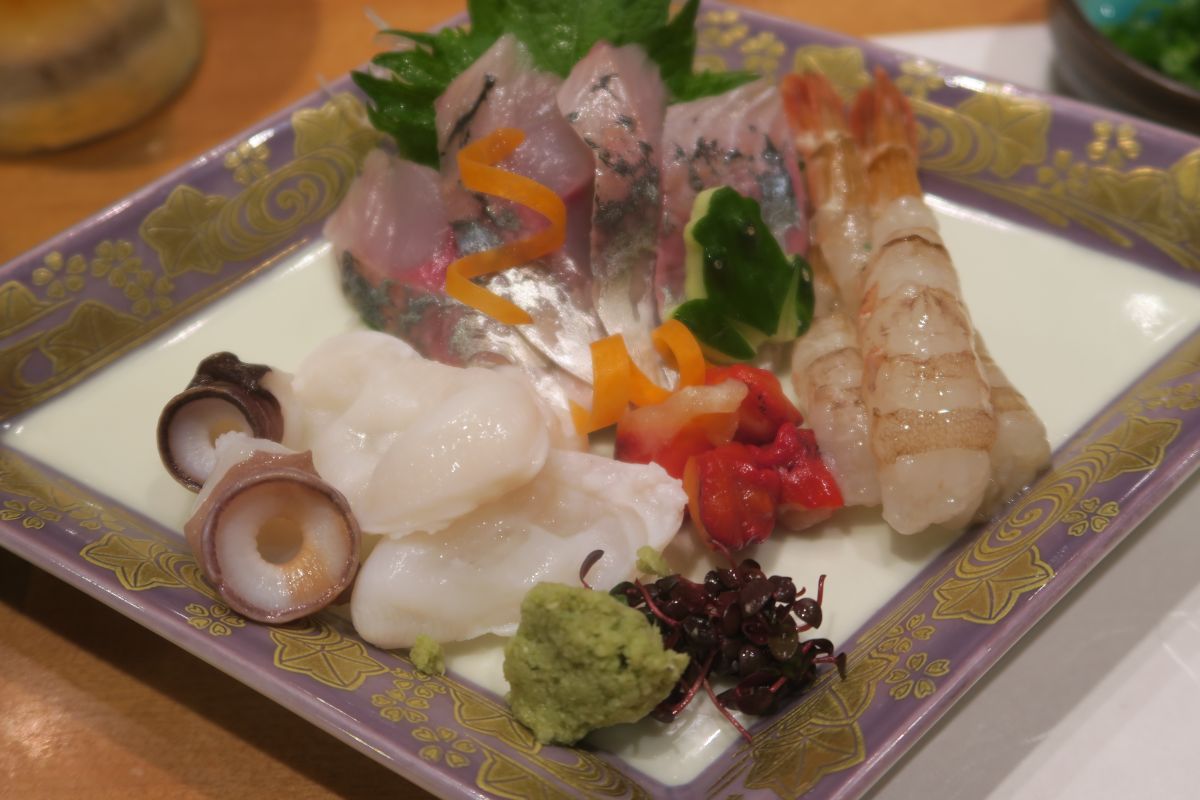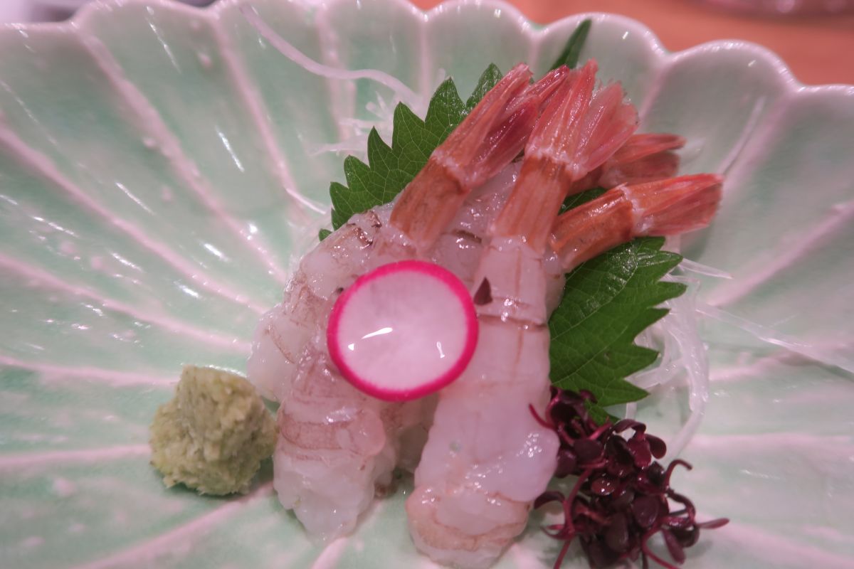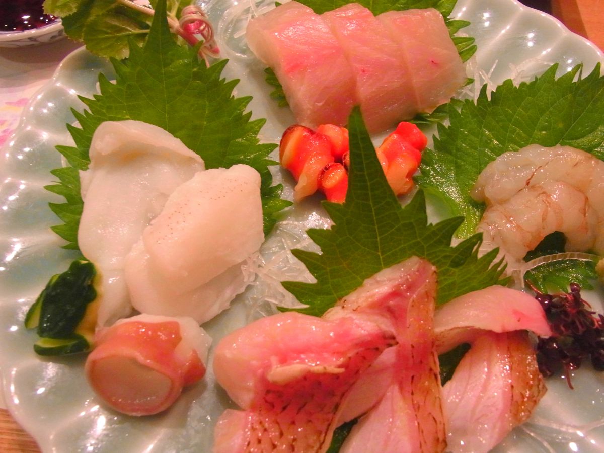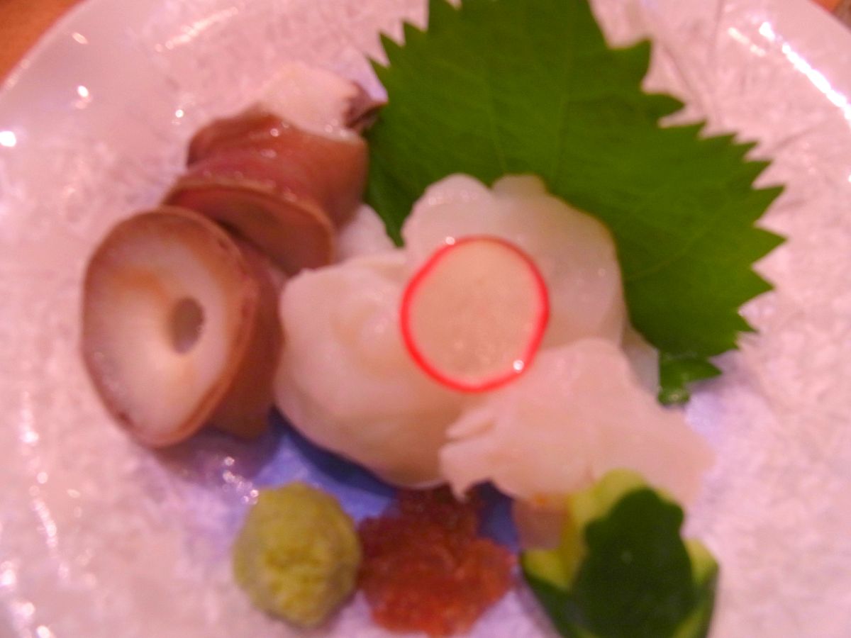 刺身 鰺、ガス海老、赤西貝、生ダコ