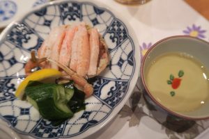 香箱蟹、鱈の白子天、牡蠣フライ、