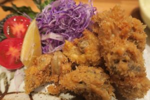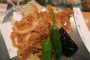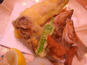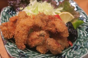 甘エビの頭のフライ、鱈の白子天、なまこ酢、牡蠣フライ