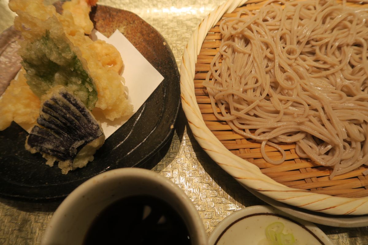 生ダコ、白エビの天ぷら、サンマの塩焼き、ホタテ、ガス海老、天ぷら蕎麦