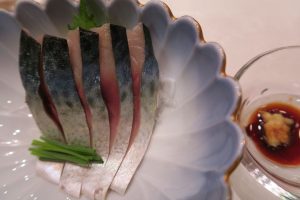 のど黒の卵の煮付け、鱈の白子酢、関鯖、がすえび。