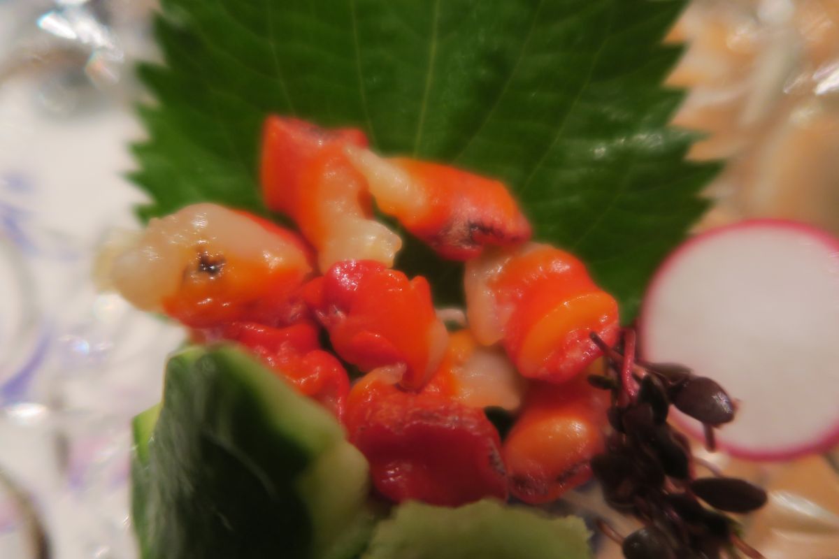 18日(土)霰降る荒れた日に示野先生と片町志げ野。蟹面。白子天が熱々とろりと旨い。赤貝がきれい、コリコリ美味い。 ナマコは夏場の海水温上昇のため生育が悪く入荷なし。