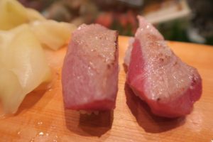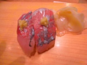 13日(土)ぶらり、ノドグロの生と炙りを食べ比べ。ノドクロは炙らないと美味くない。冷凍のマグロは炙るが、この時期に能登沖で揚がるマグロは生が美味い。
