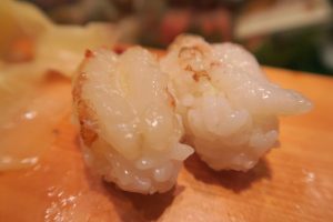 バイ貝、ウニ、トロあぶり、ガス海老、ぶり