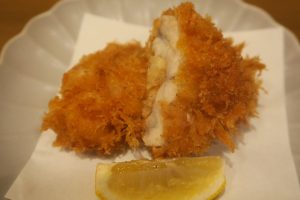 16日(火)来月のJRの切符を買いに金沢駅へ。連休過ぎても超満員。みどりの窓口も40人待ち。切符を買い終えたらお昼になり、2日前に訪れた「かつぞう」で気になっていた「能登ふぐかつ」。しっかりした歯ごたえがある。塩とレモンで味変。