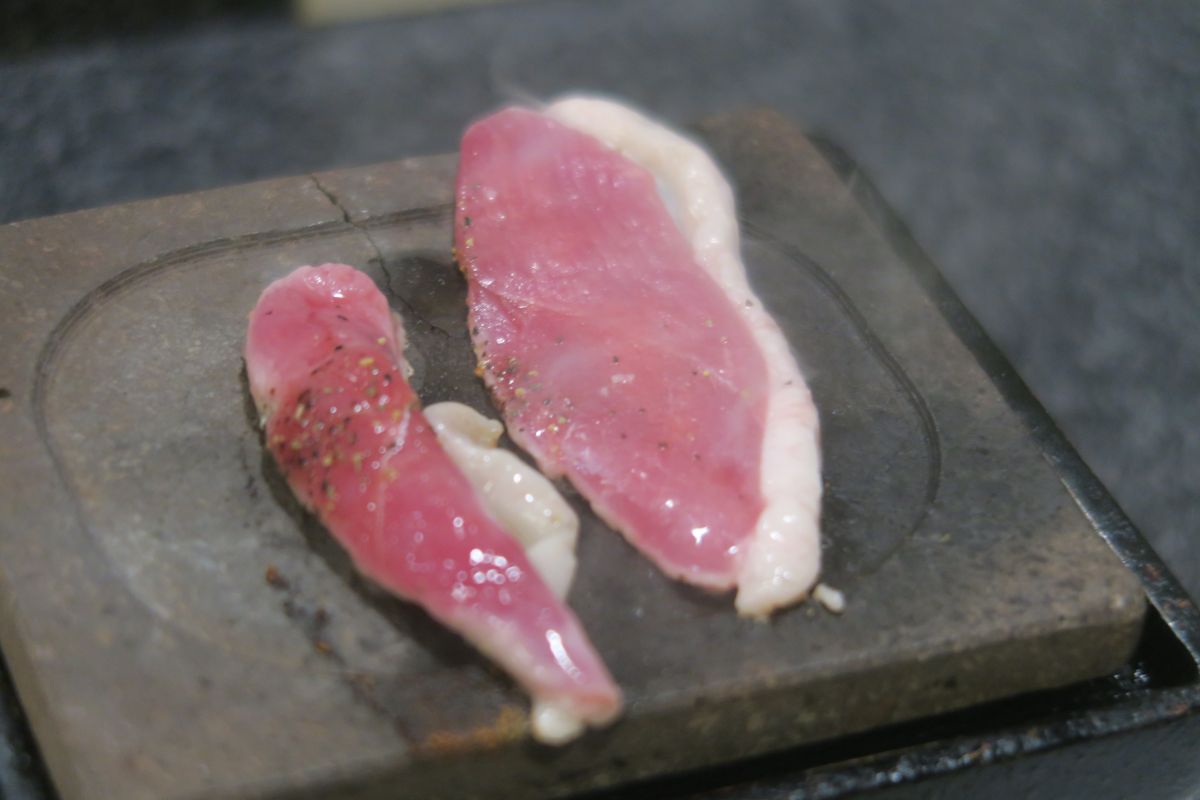 鴨の石焼き
