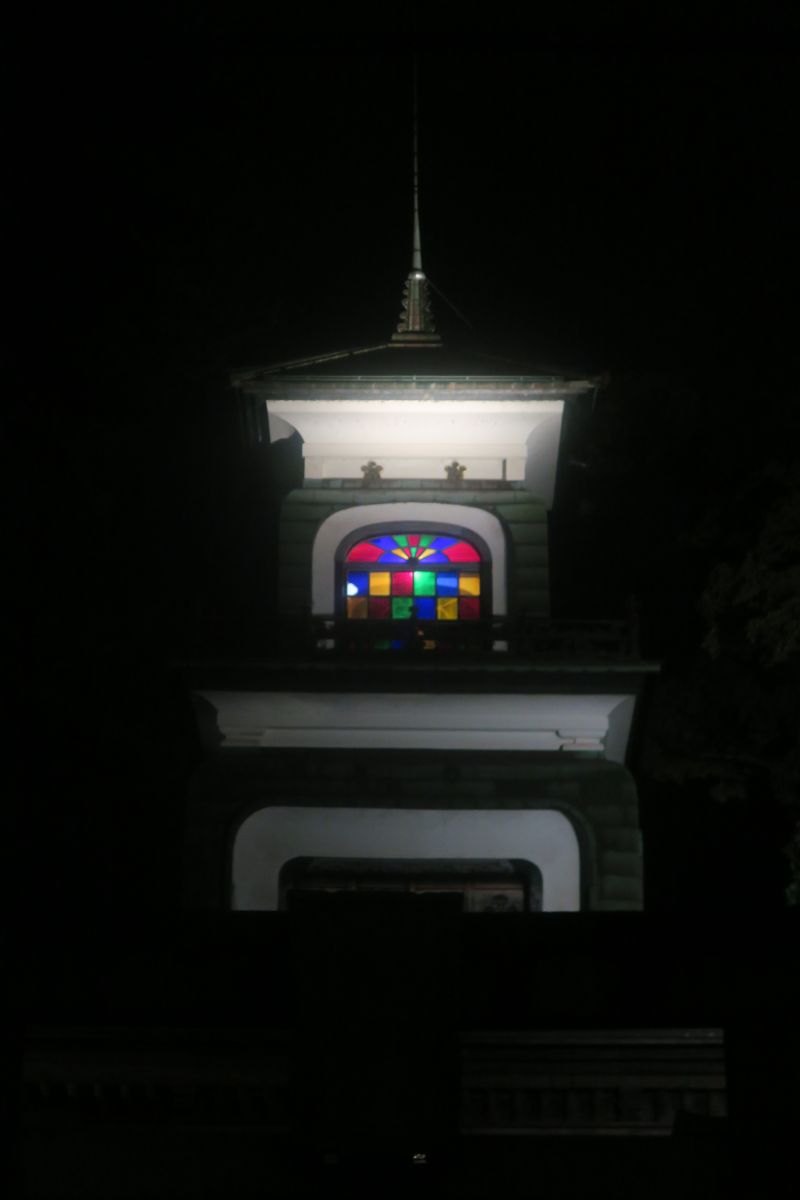 尾山神社前の「じんや」にてゆったりのんびり。松茸をサンマで巻いた塩焼きが美味かった。日曜にやっている居酒屋は少ないから超満員。英語メニューがある。帰りに見た尾山神社のステンドグラスはきれい。
