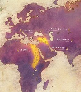 しかし、実際には4つの文明以外にも、世界各地に文明が興り、互いに影響し合いながら、あるいは独自の道を歩みながら栄えていた。近年は、発掘技術や分析方法の進歩によって、従来の文明像を塗り替える発見が相次いでいる。例えば、トルコ南東部のギョベックリ・テペでは、これまで最古と言われていたメソポタミアより5千年も前、農耕以前の狩猟採集民が巨大な石柱群を築いていたことが明らかになり、都市や権力があって初めて文明が成立するという、それまでの西洋中心の進化モデルを根底から覆した。
