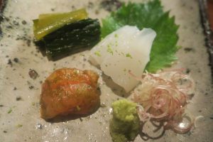 刺身 アオリイカと甘エビのおぼろ昆布締め