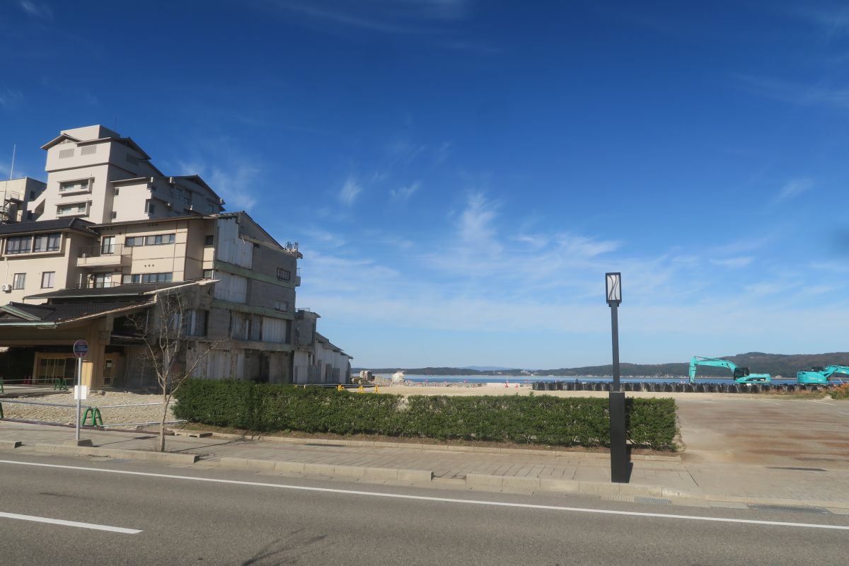 震災後、約2年ぶりに和倉温泉を訪れる。加賀屋や海舟など多くが営業していない。人通りも少ない。高層旅館にまだまだ爪痕が残る。傾いたように見えたり亀裂が走ったりしていたり、解体中・修復中の鉄筋・鉄骨の断面がむき出しになったりしている。また、段差や剥がれたブロック系舗装を修復した道路や褶曲した歩道が目立つ。これだけの力が加われば、建物の地下に埋設された配管のダメージは相当のものだろう。温泉街の海沿いの護岸設置工事は2026年度中に完了予定で、再建にはまだまだ時間がかかりそうだ。それでも美湾荘など一部の旅館が規模を縮小し再開したり、旅館の一角で飲食店を始めたりして、必死に営業努力をしている。そんな中で、クラウドファンディングといろんな人の協力を得て再起した、美湾荘向かいにあるビストロ・ブロッサムは満員だった。美味しく頂き帰路につく。