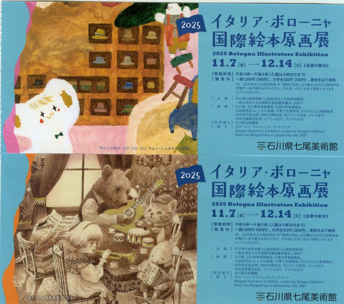 16日(日)気持ちの良いドライブ日和。9月20日に再開館した七尾美術館を目指す。イタリア・ボローニャ国際絵本原画展に心ウキウキ。この企画を毎年続ける学芸員のセンスが光る。絵本に繰り広げられる原画には、絵画や版画とは違う魅力がある。小さな絵の中にぎゅっと詰め込まれた作者の思いやしっかり書き込まれた独特な異空間を表現している。世界各国の色使いや作風も楽しむ。食彩市場は賑わっていたが、修復途中や更地、閉店などの一本杉通りは閑散としていた。