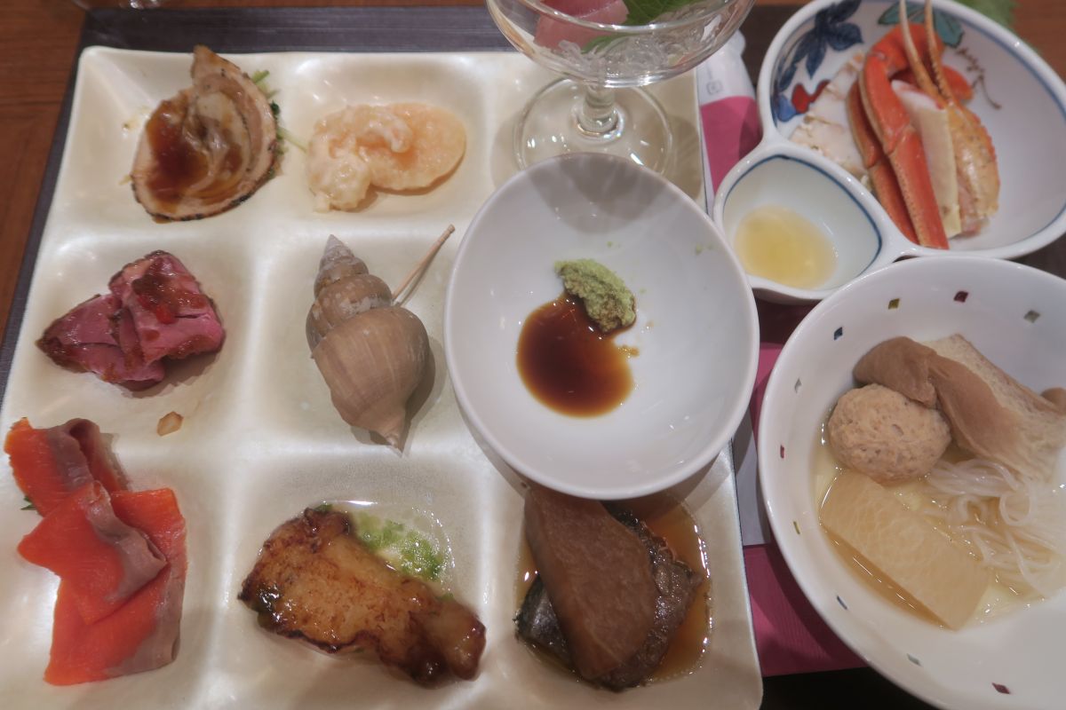 バイキング料理は抜群。満足、満腹。蟹、刺身など魚介はさすがに能登、鮮度や素材が桁違い。料理人の腕も確か。鰤大根と里芋の煮っ転がしが美味かった。