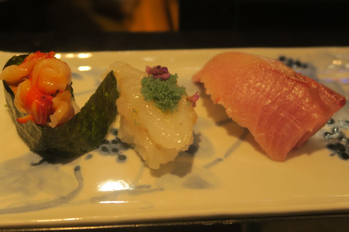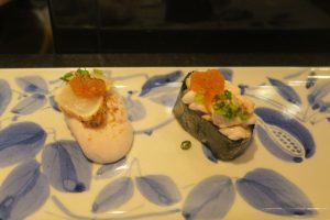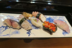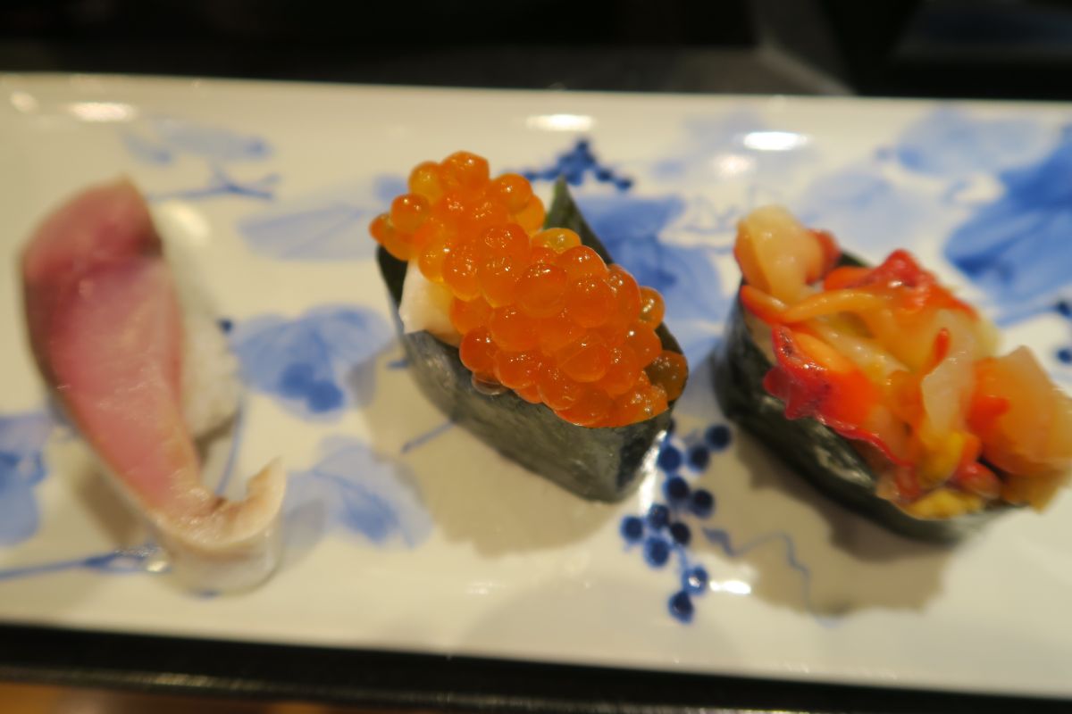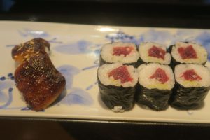 ノドグロあぶり、縞エビ、鉄火巻き、かんぴょう