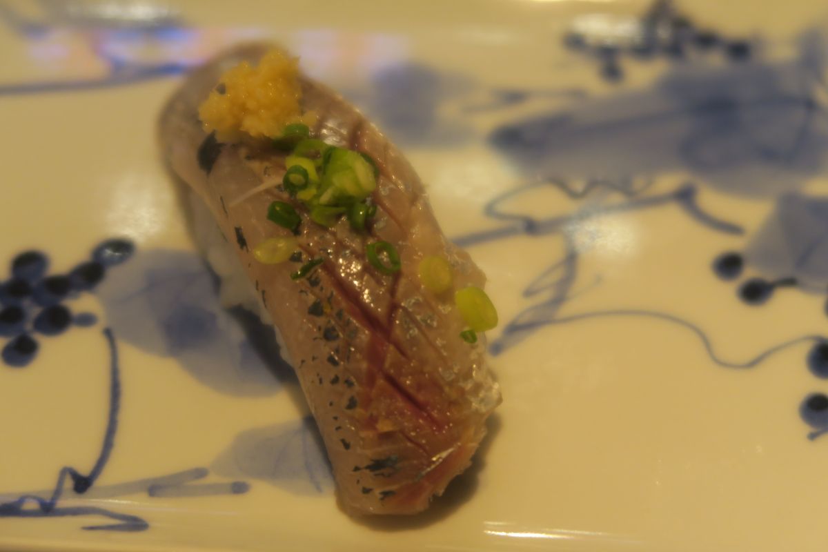 握り ヒラメ、〆鯖、ガス海老、鰤トロ、ゲソ、赤西貝、鉄火巻き