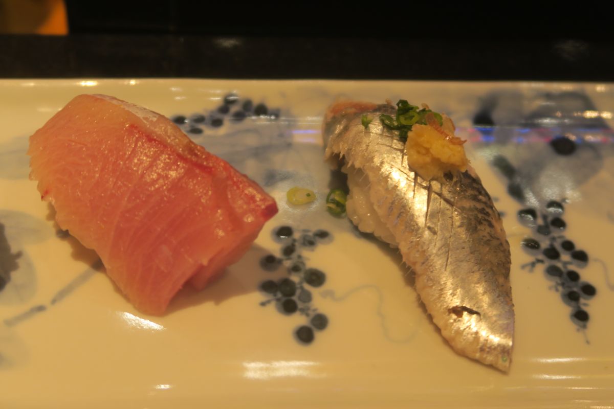 握り 赤西貝、ガス海老、鰤トロ、鰯、鉄火巻き
