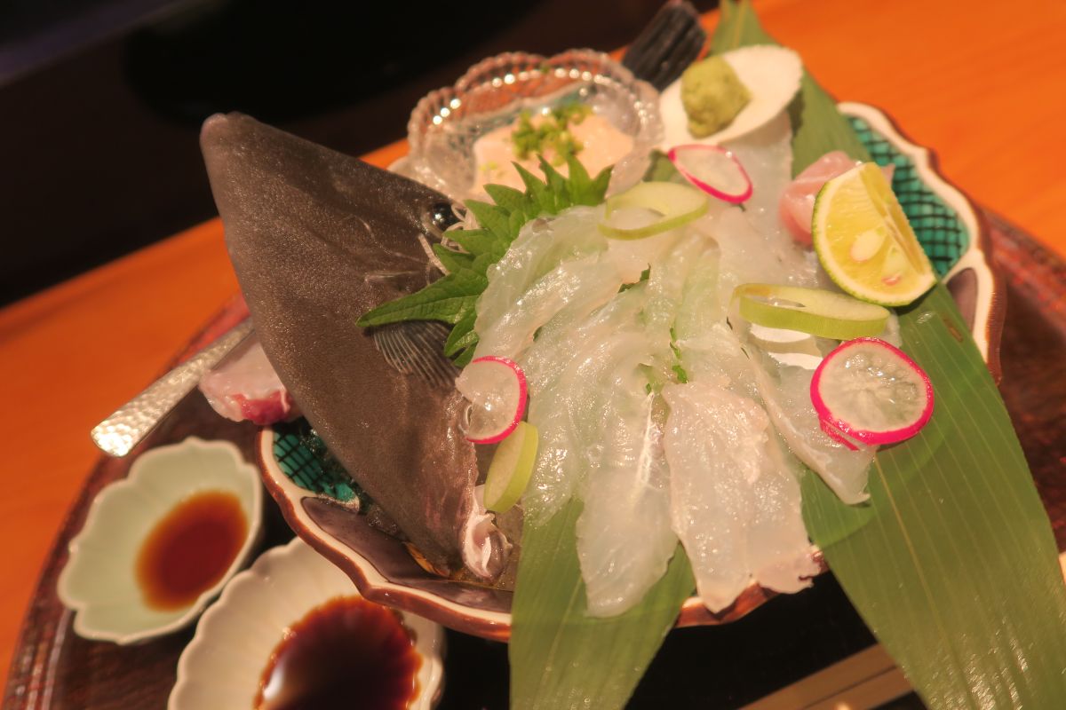 かわはぎの活き作り&味噌汁
